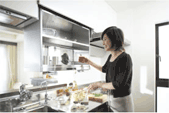 作業効率をとことん追求。料理はシッカリ作る。けれども後片付けはテキパキ済ます。ムダが無いから時間に余裕も出来ます。使いやすい高さに電動昇降できる収納や、レンジフードを自動洗浄する機能もあるから、お掃除も簡単。台所仕事をサッと素早く行えます。
