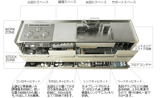 機能性が高く、効率的な収納スペースだから使いやすく、作業効率のいいキッチンを実現します。