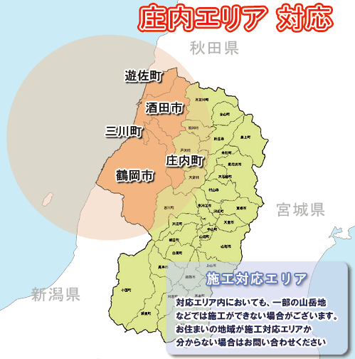 鶴岡市、酒田市、東田川郡三川町、東田川郡庄内町、飽海郡遊佐町